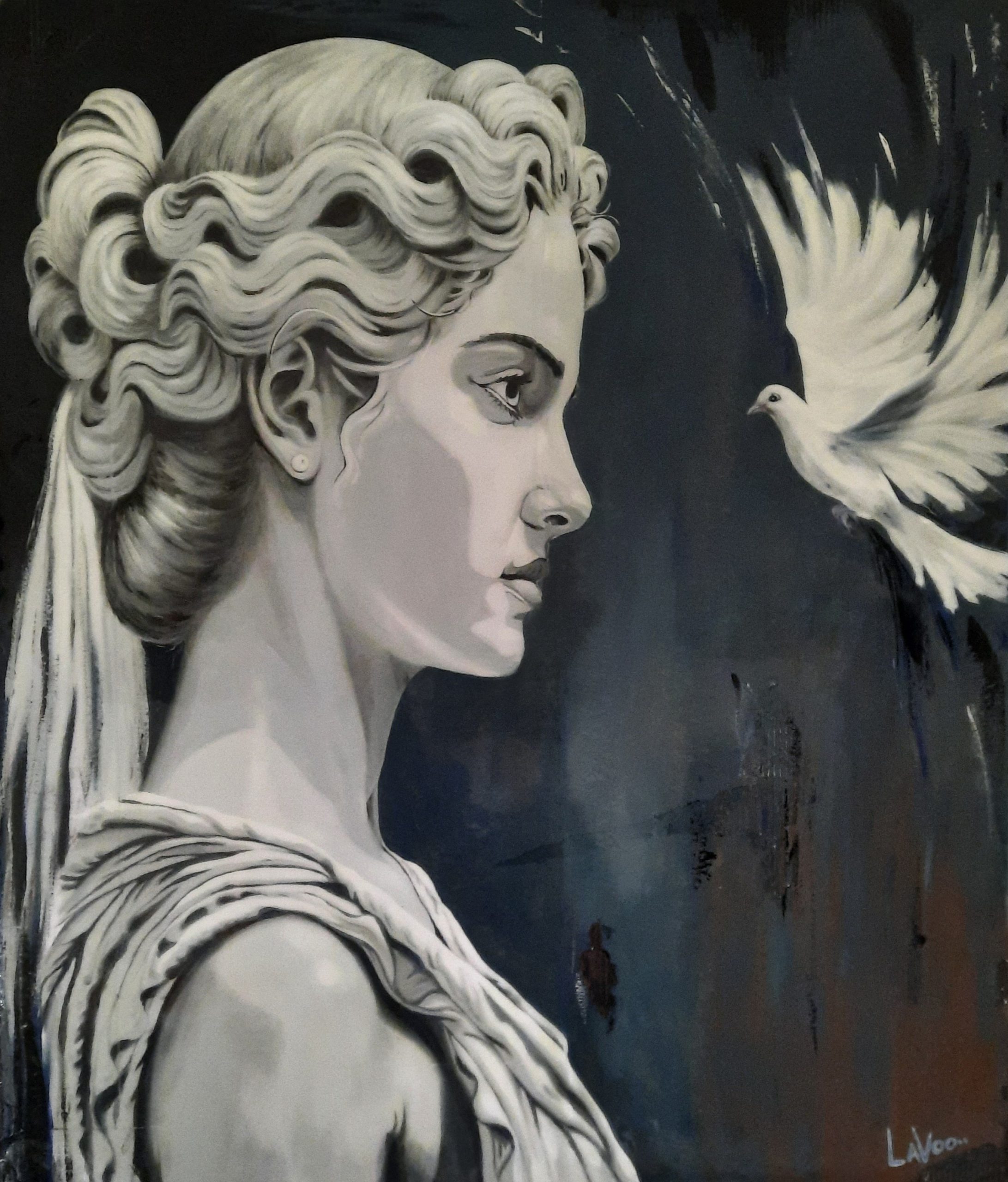 Meisjesbeeld met duif
